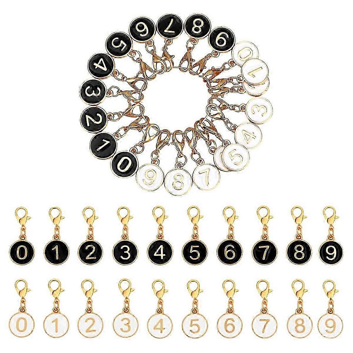 Construction: Crafted from high-quality zinc alloy, these markers boast and resistance to tarnish. The robust lobster clasps a secure hold, making them ideal for repeated use in knitting, crocheting, and other crafting endeavors.Multipurpose Functionality: Designed for versatility, these numbered markers are perfect for marking the beginning and end of pattern sections in knitting and crocheting. They also double as charming zipper pulls, earrings, or bracelet charms, expanding your DIY jewelry making options.Easy-to-Read Numbers: Each marker is clearly numbered from 0 to 9, making it simple to keep track of your stitches or rows, especially in intricate crafting projects. The black and white colors enhance visibility against any yarn or fabric background.Comprehensive Set: This package includes 20 markers, with 10 in black and 10 in white, providing ample quantity for all your project needs. Whether you're a beginner or a seasoned , these markers are an essential addition to your toolkit.Ideal Gift for Crafters: These markers are not only practical but also stylish, making them an excellent gift for friends and family who enjoy crafting. Their functionality and elegant design are sure to be appreciated by any DIY enthusiast.Description/Features:Enhance your knitting or crocheting projects with these stylish and functional Number 0-9 Markers Clasp. Perfect for keeping track of your stitches and rows, these markers are designed to easily clip onto your work without snagging. Available in classic white and black, they blend seamlessly with any project.Specifications:Product Name: Number 0-9 Markers ClaspColor: Black & WhiteMaterial: Zinc AlloyPackage Contents:20 PCS Number 0-9 Markers ClaspOnly the above package content, other products are not included.Note: Light reflection and different displays may cause the color of the item in the picture a little different from the real thing. The measurement allowed error is +/- 1-3cm.