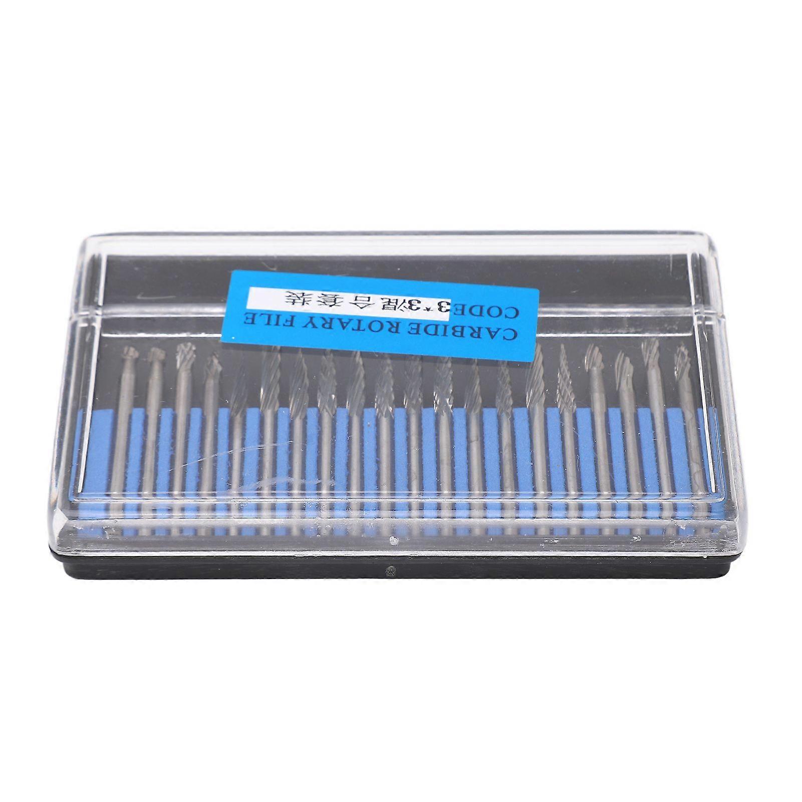 20pcs Rotary Burr Set 3mm Shank Tungsten Steel for Woodworking Carving Polishing Grinding
