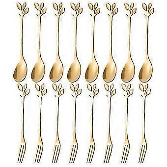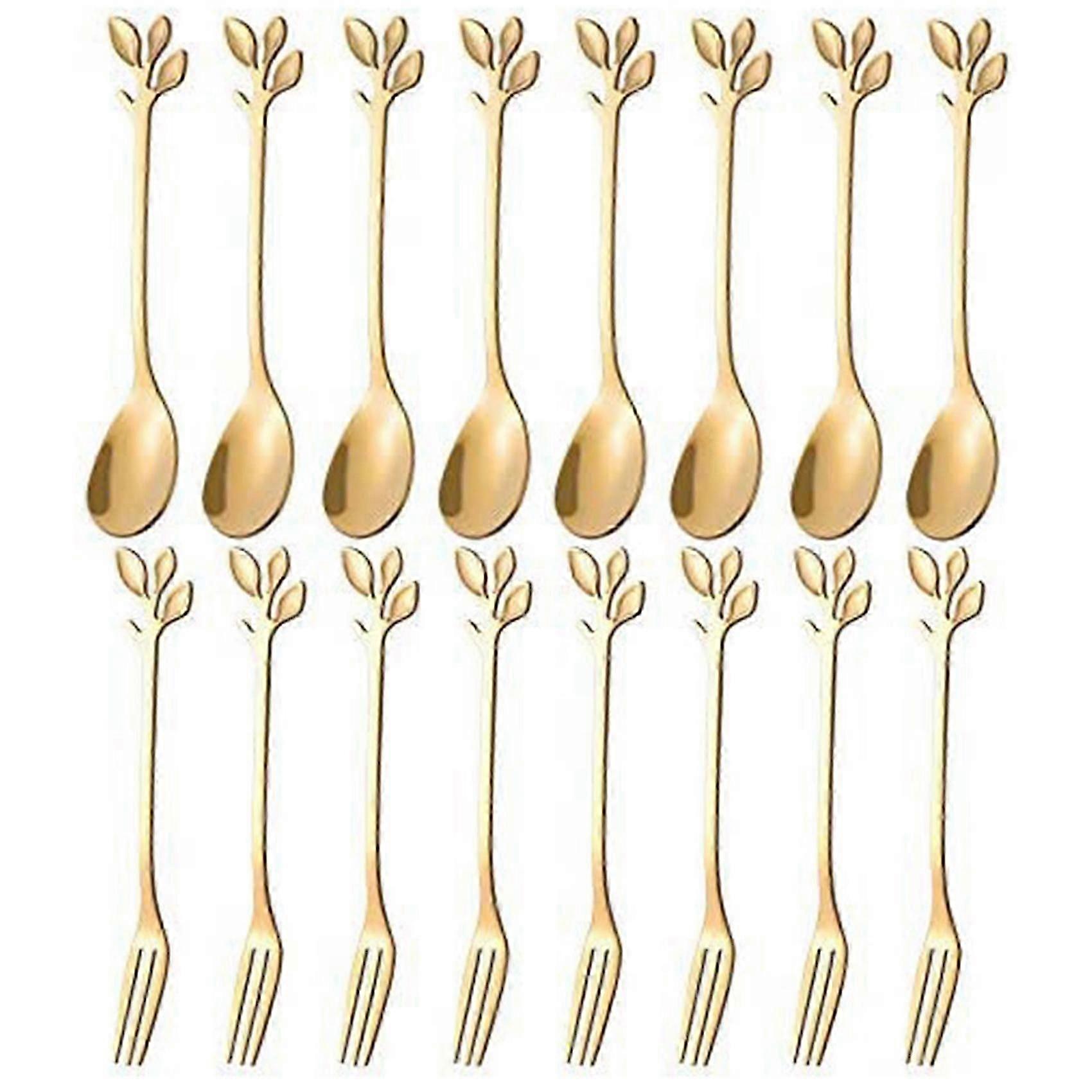 20PCS Dessert Spoon and Fork Set Cake Fork Coffee Spoon Fruit Fork Stainless Steel -Gold JN