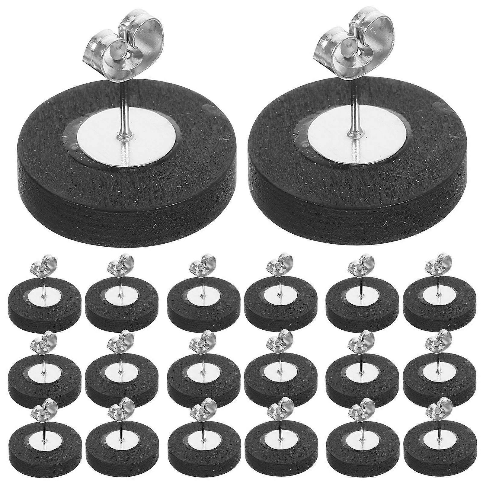 20pcs Wooden Earring Bezels with Stainless Steel Posts – Round Black Cabochon Settings for DIY Jewelry Making, Lightweight and Comfortable Design