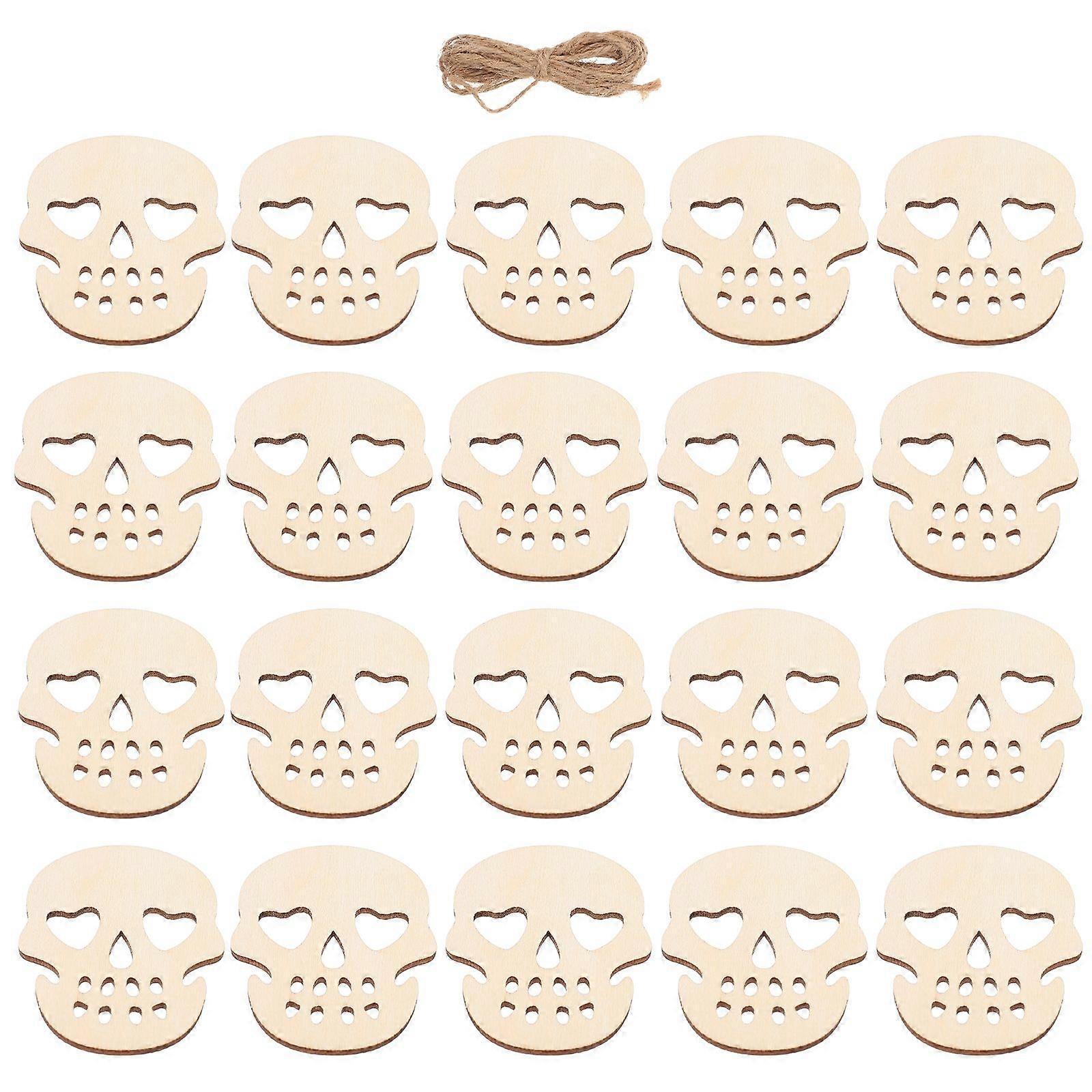 20 Pcs Halloween Skull Hanging Decors Wood Skull Ornaments Party Pendants