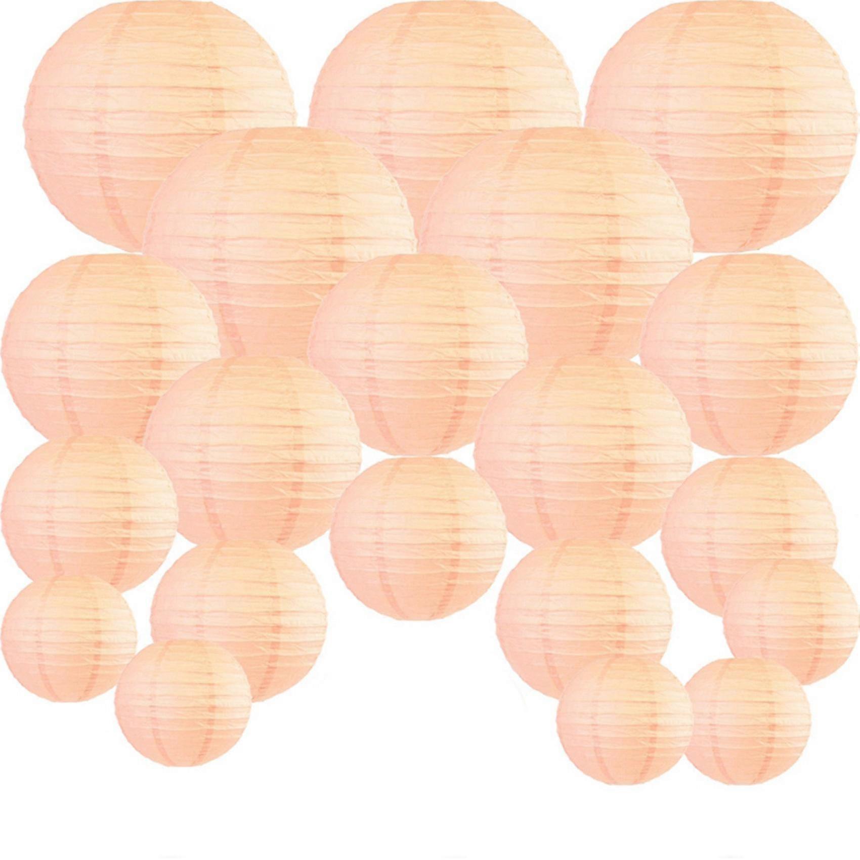 20 Pcs 6 Inch-12 Inch Peach Paper Lantern Chinese Assorted Sizes Round Lampion for Wedding Party Ou-JC