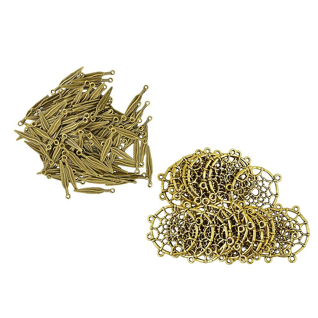 20pcs Antique Bronze Dreamcatcher Connector Charms + 100pcs Feather Pendant