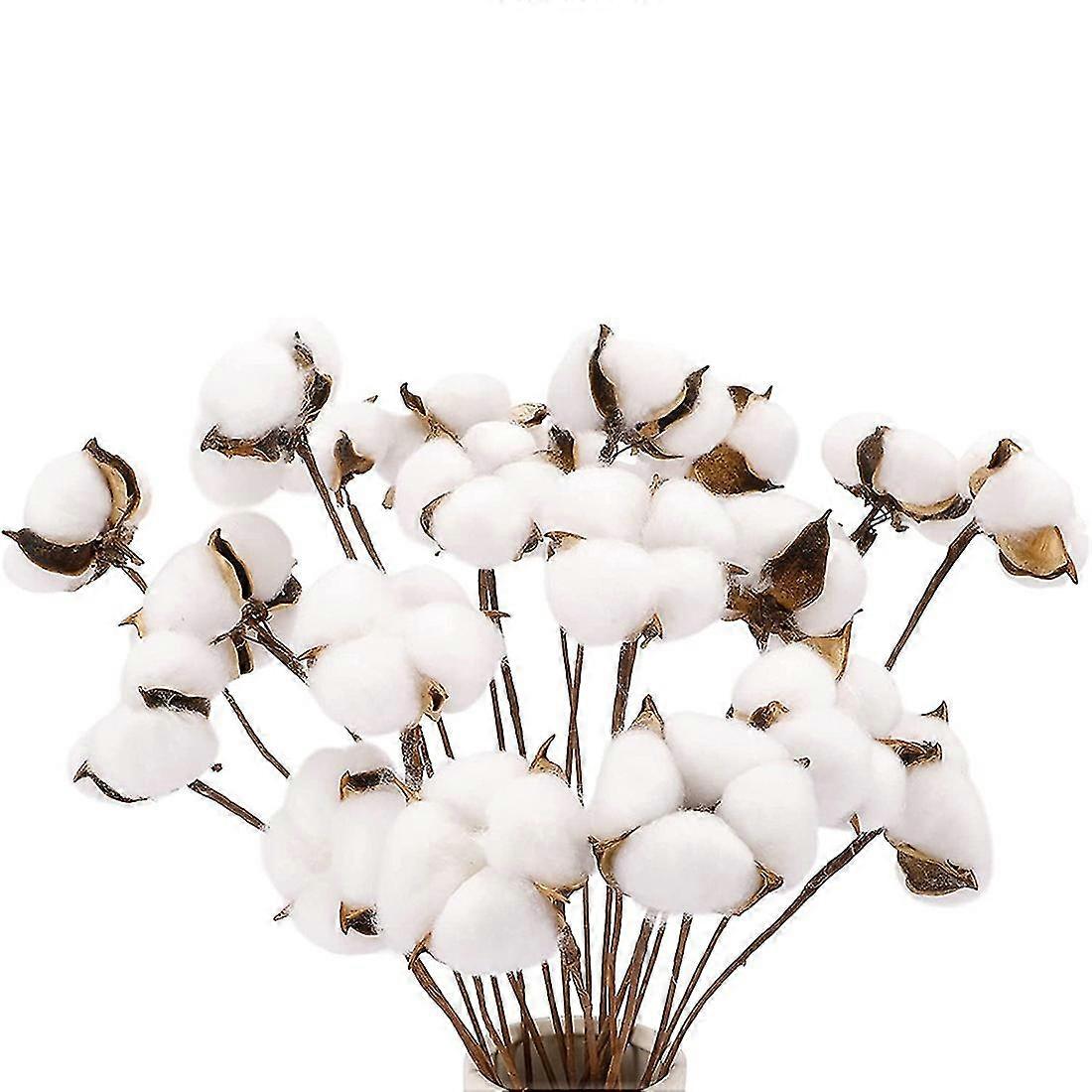 20Pcs Cotton Stems,Fake Cotton Flowers, Artificial Cotton Floral Stems Faux Farmhouse Decorations f