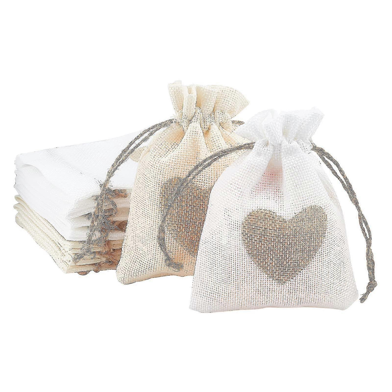 20pcs 2-colors Burlap Bags With Heart 5.6x4 Inch Burlap Gift Bags With Drawstring For Wedding, Party, Graduation, Birthday (white)