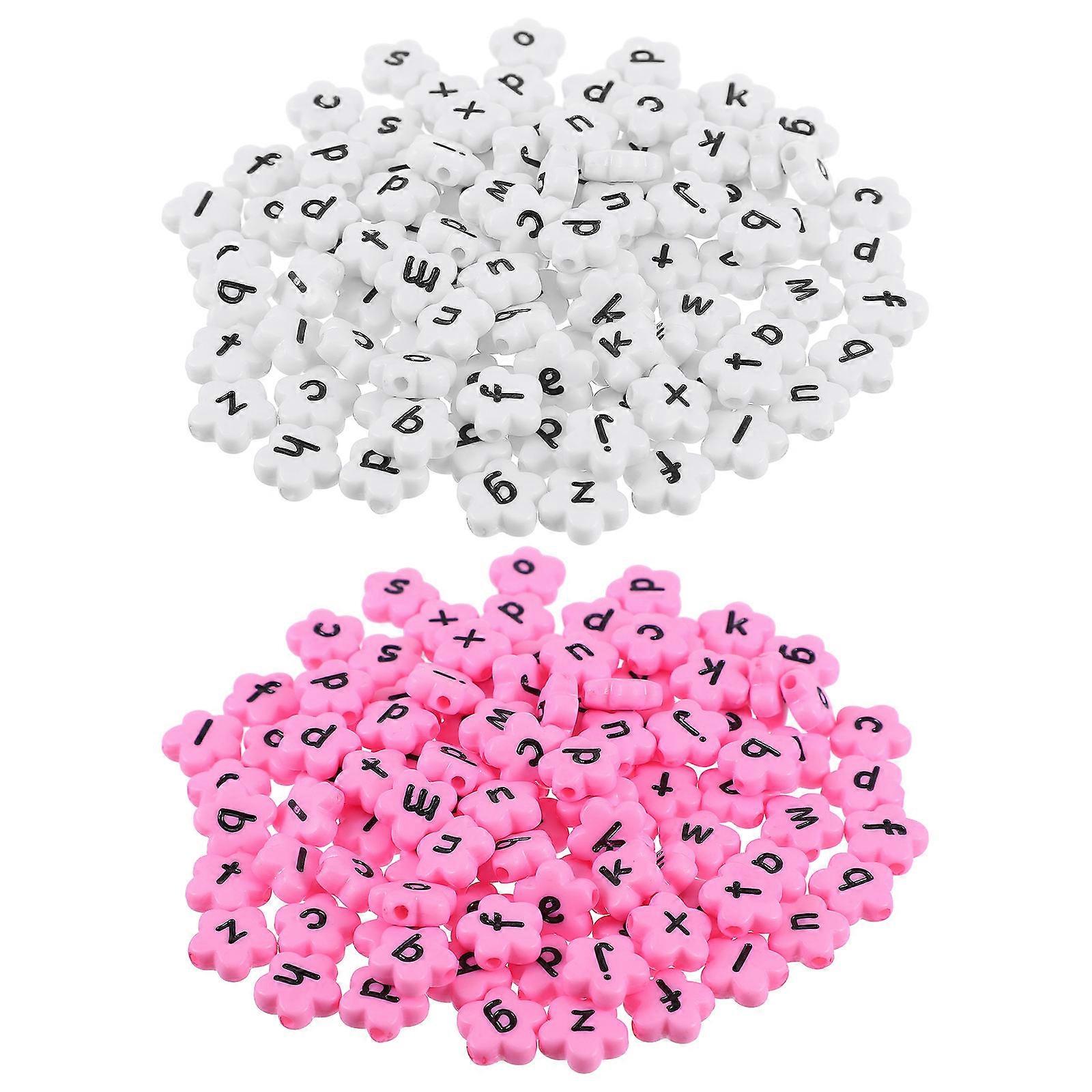 200pcs Acrylic Flower Shaped Letter Beads for DIY Jewelry Making – Durable, Lightweight Spacer Beads in Pink and White with Black Lowercase Letters