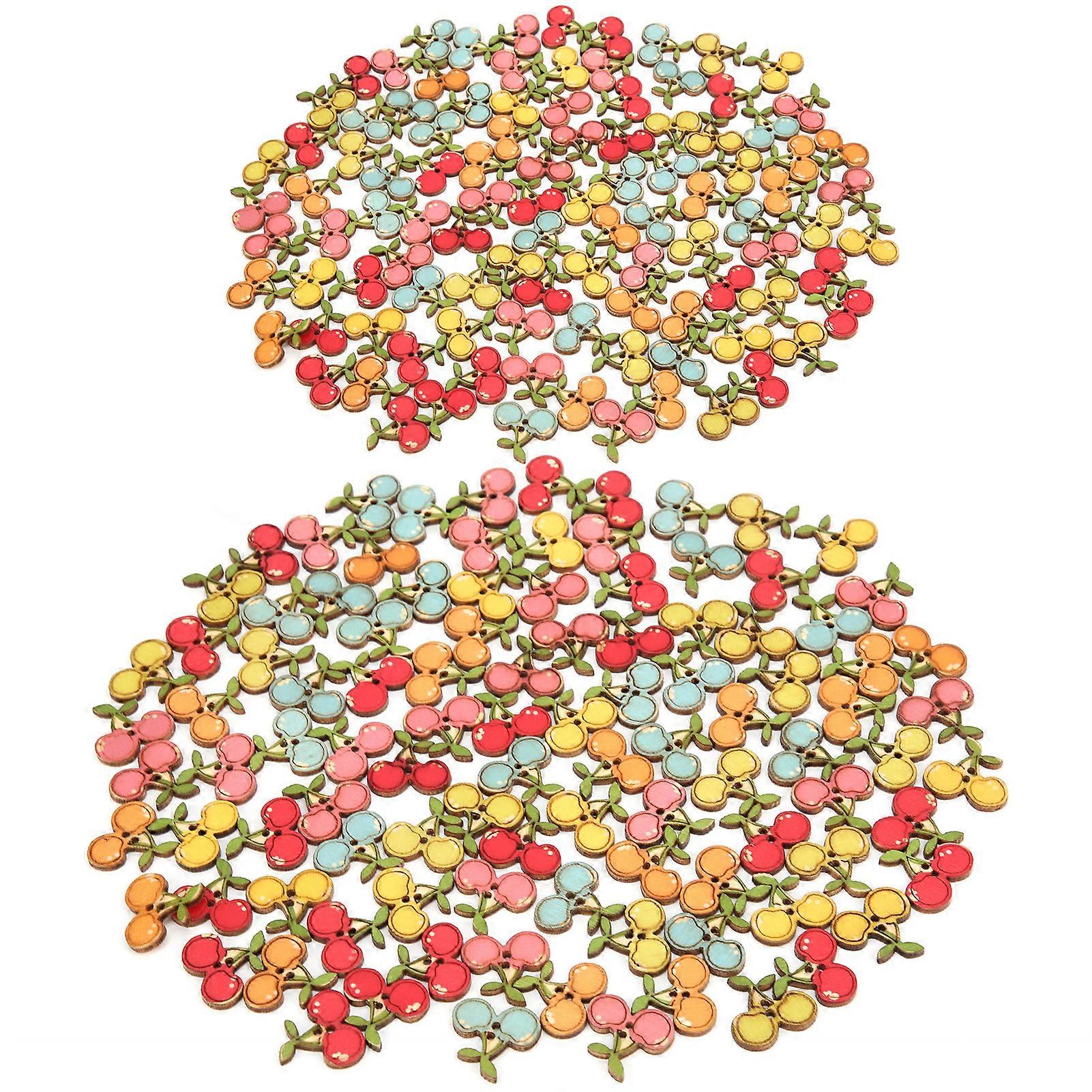 200Pcs Colored Wooden Buttons Mixed Logs Cherry Buttons for Sewing Children Sweater Crafts
