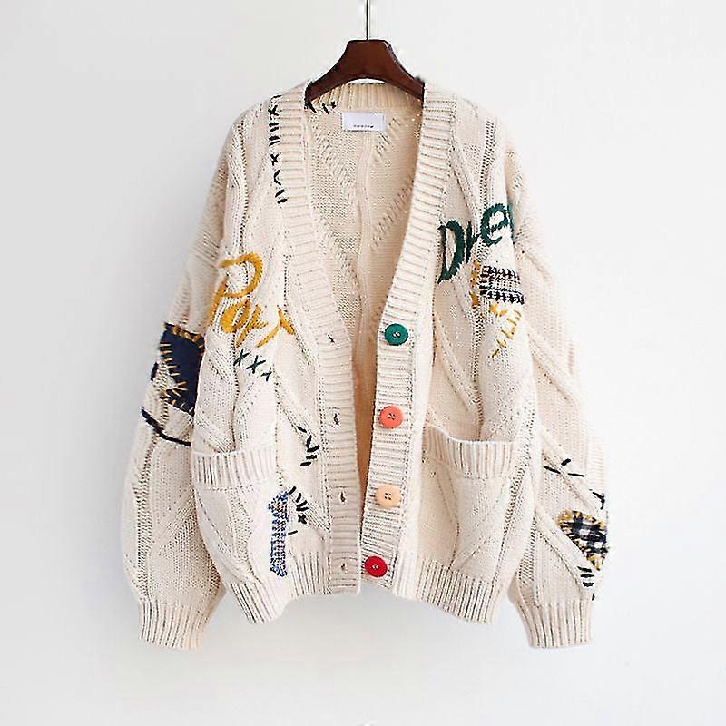 2020 Autumn winter women cardigan warm knitted sweater jacket pocket embroidery fashion knit cardigans coat lady loose sweaters