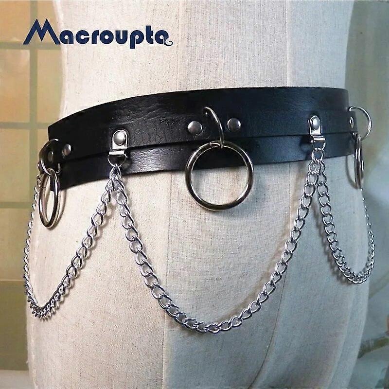 2021 New Punk Gothic Faux Leather Belt Metal Chain Ring Waist Strap Street Dance Decor