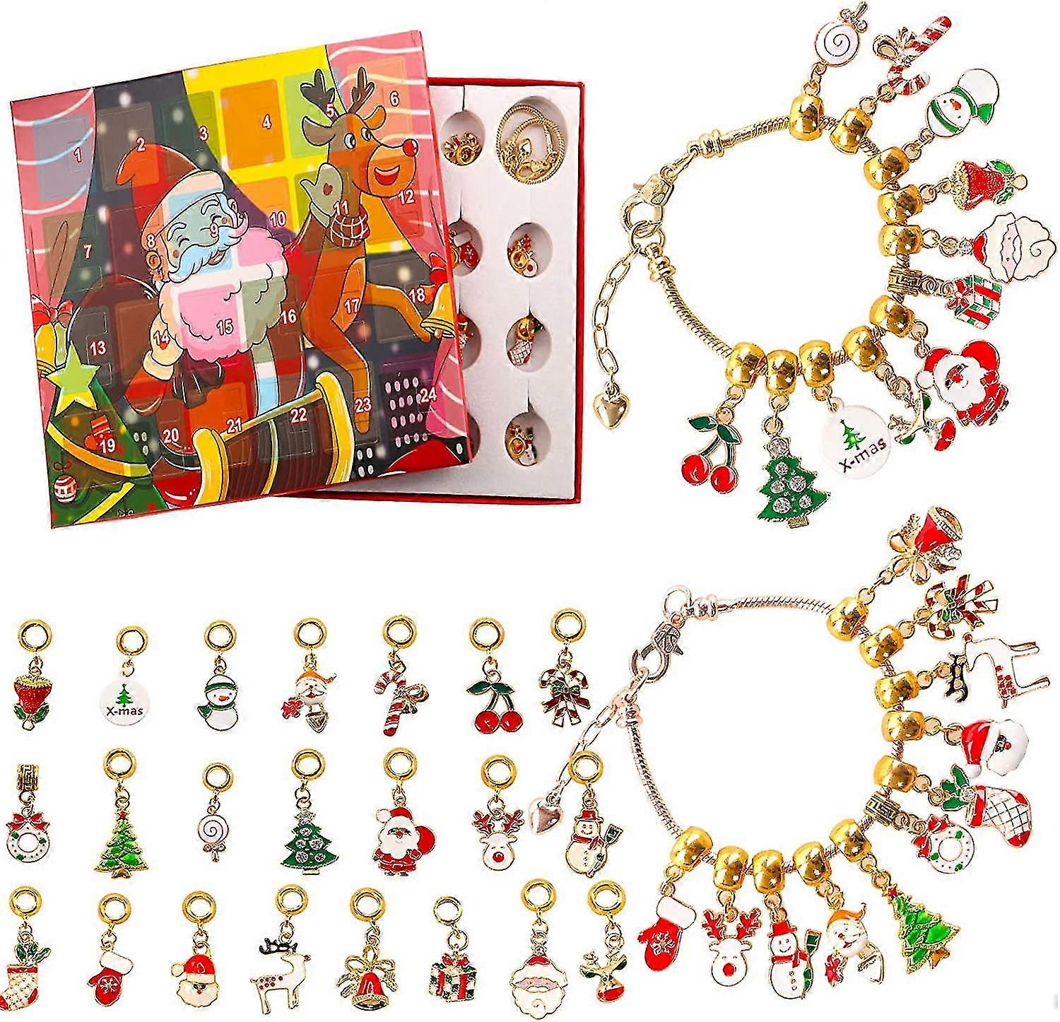 2022 Christmas Advent Calendar 24 Days Christmas Countdown Calendar Blind Box Bracelet Diy Jewelry Making Kit Include 22 Charm Beads 2 Bracelets Xmas