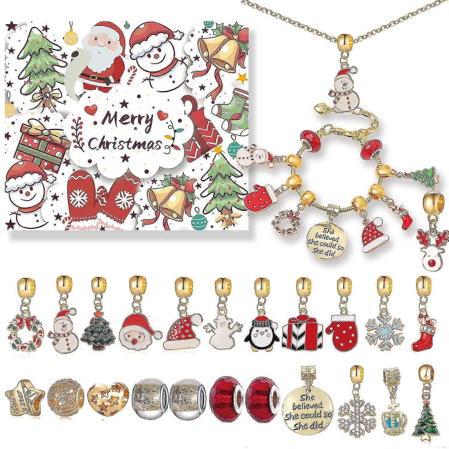 2022 Christmas 24 Days Countdown Advent Calendar Diy Bracelets Necklace Pendant Blind Box Kit
