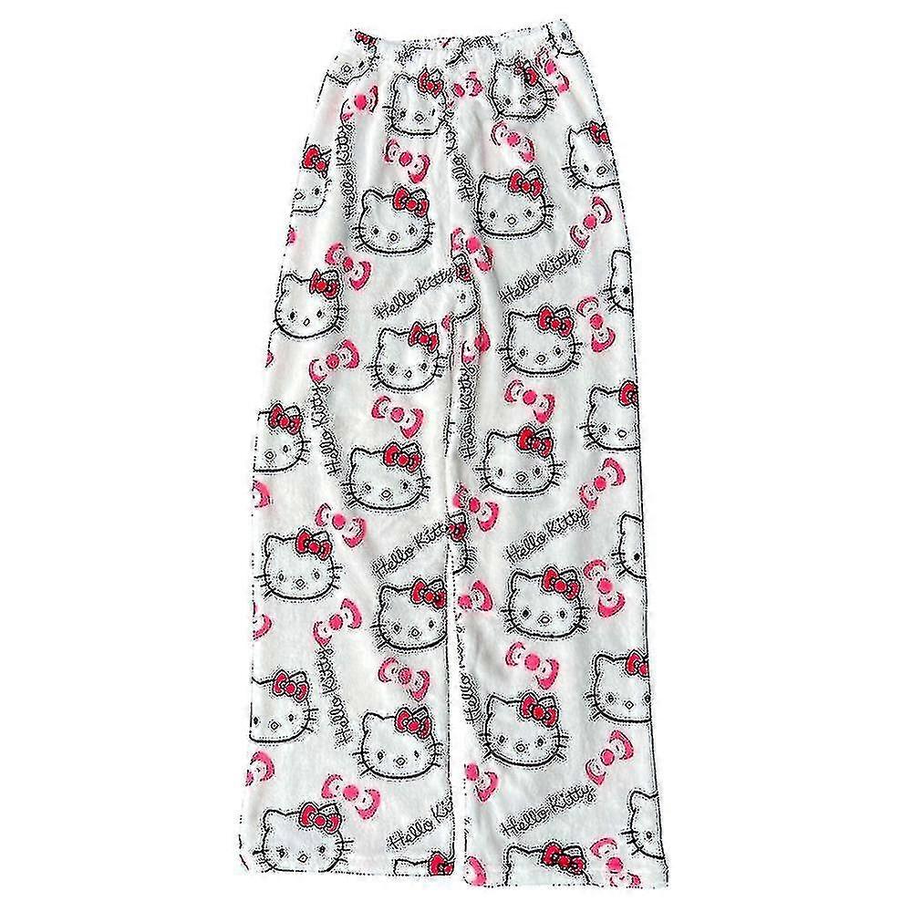 2023 Anime Sanrio Hello Kitty Pajamas Black Flannel Women Kawaii Woolen White Cartoon Casual Home Pants Autumn Fashion Trousers 2024 New - 2023 2024 N