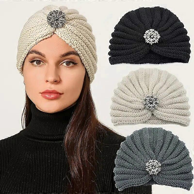 2023 New Round Bead Accessory Hat Women Wool Knitted Hats Bohemian Hijab Cap Autumn and Winter Silver Diamond Jewelry Bonnet
