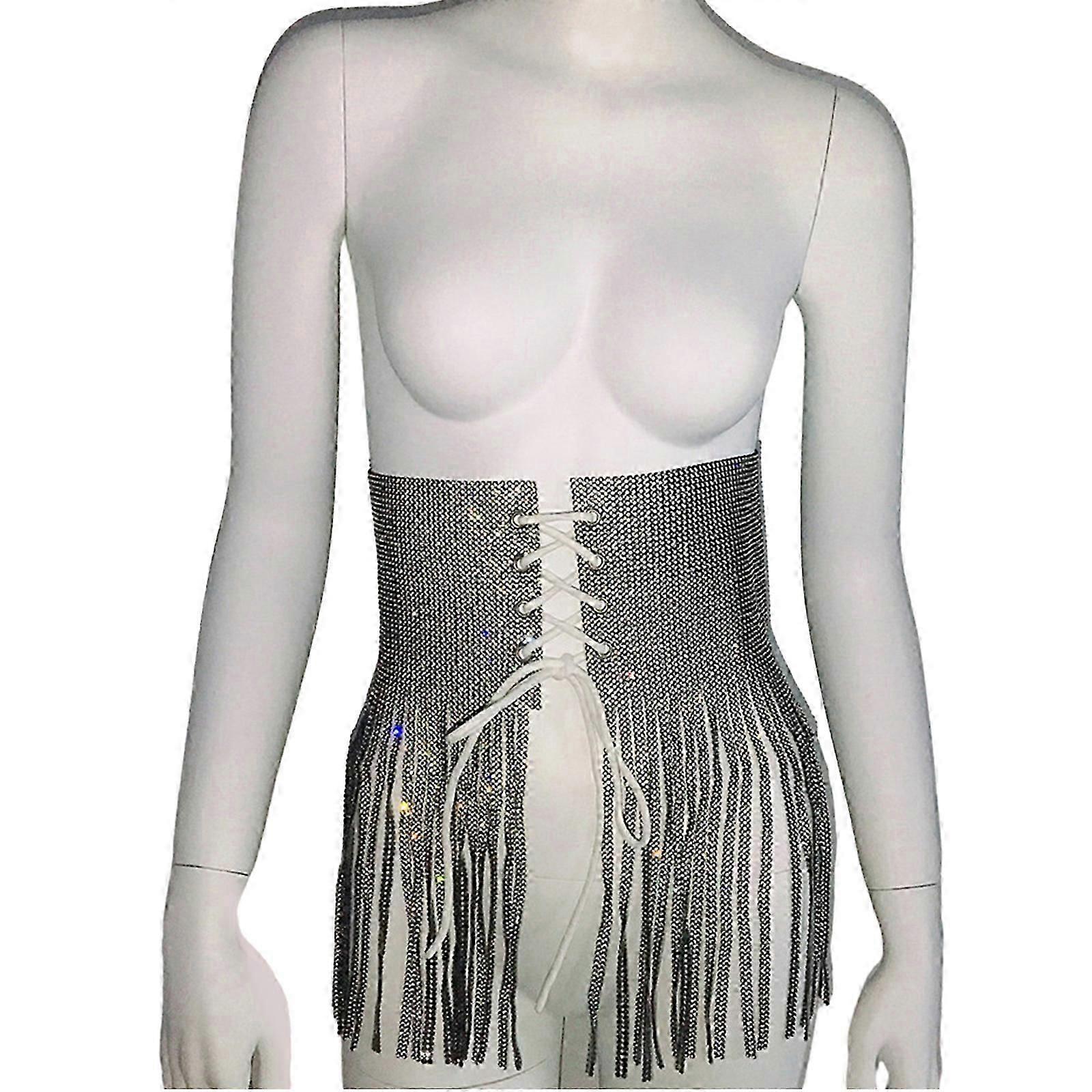 2023 New Women Mini Skirt Glitter Rhinestone Tassels Hollow Out Drawstring Adjustable Fahion Streetwear Skirt Sexy Night F L