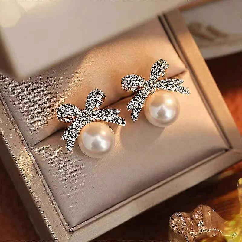 2023 4pcs New Style Temperament White Color Wedding Bow Stud Earrings For Women Rhinestone Bowknot Ball Earring Girls Party Jewelry