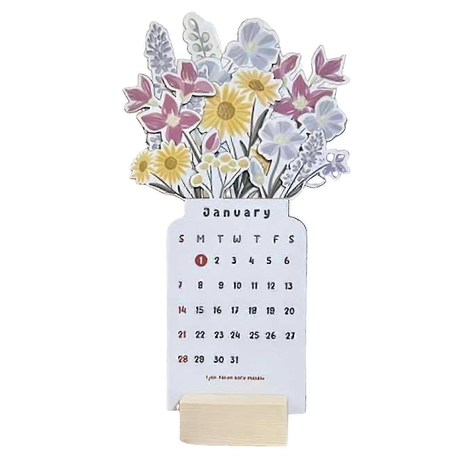 2024 Bloomy Flowers Desk Calendar Floral New Year Calendar for Office Desk Decor Home Decor
