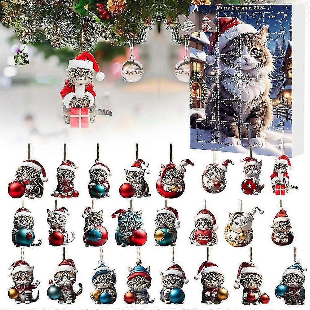 2024 Christmas Cat Advent Calendar, Cute 2D Cat Pendant Christmas Countdown Calendar Xmas Gift Decor