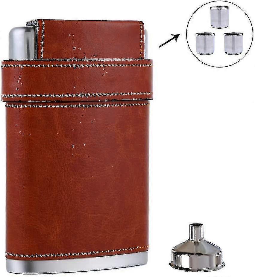 2024 Pocket Hip Flask 8 Oz With Funnel - Stainless Steel With Leather Wrapped Cover & 100% Leak Proof