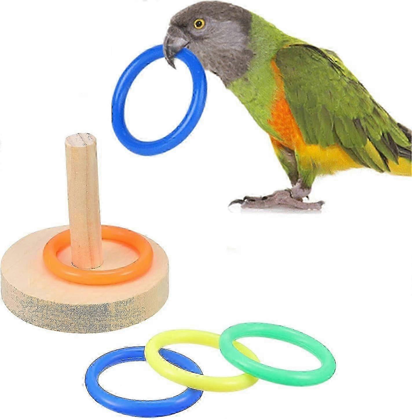 2024 New Bird Training Toy, Wooden Bird Toy Parrot Training Basketball Color Stacking Ring