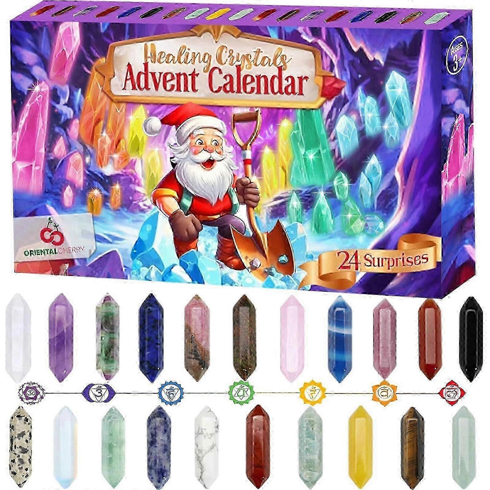 2024 Advent Calendar Gifts 24 Days Crystals Stones Kit With Crystal Necklace Holder Magnifier Storage Bag