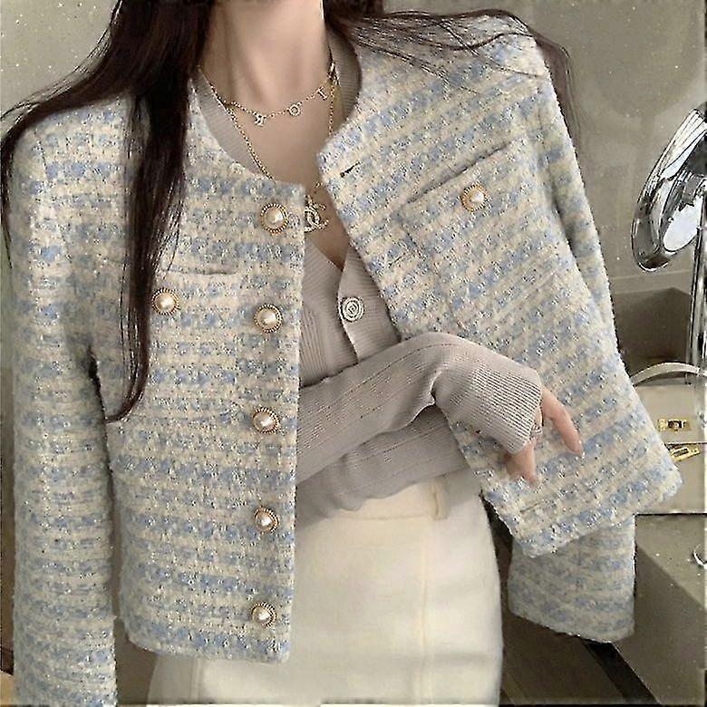 2025 Autumn Women Elegant Tweed Cardigan Short Coat With Pocket Single Breasted Jacket For Women Loose Outwear
