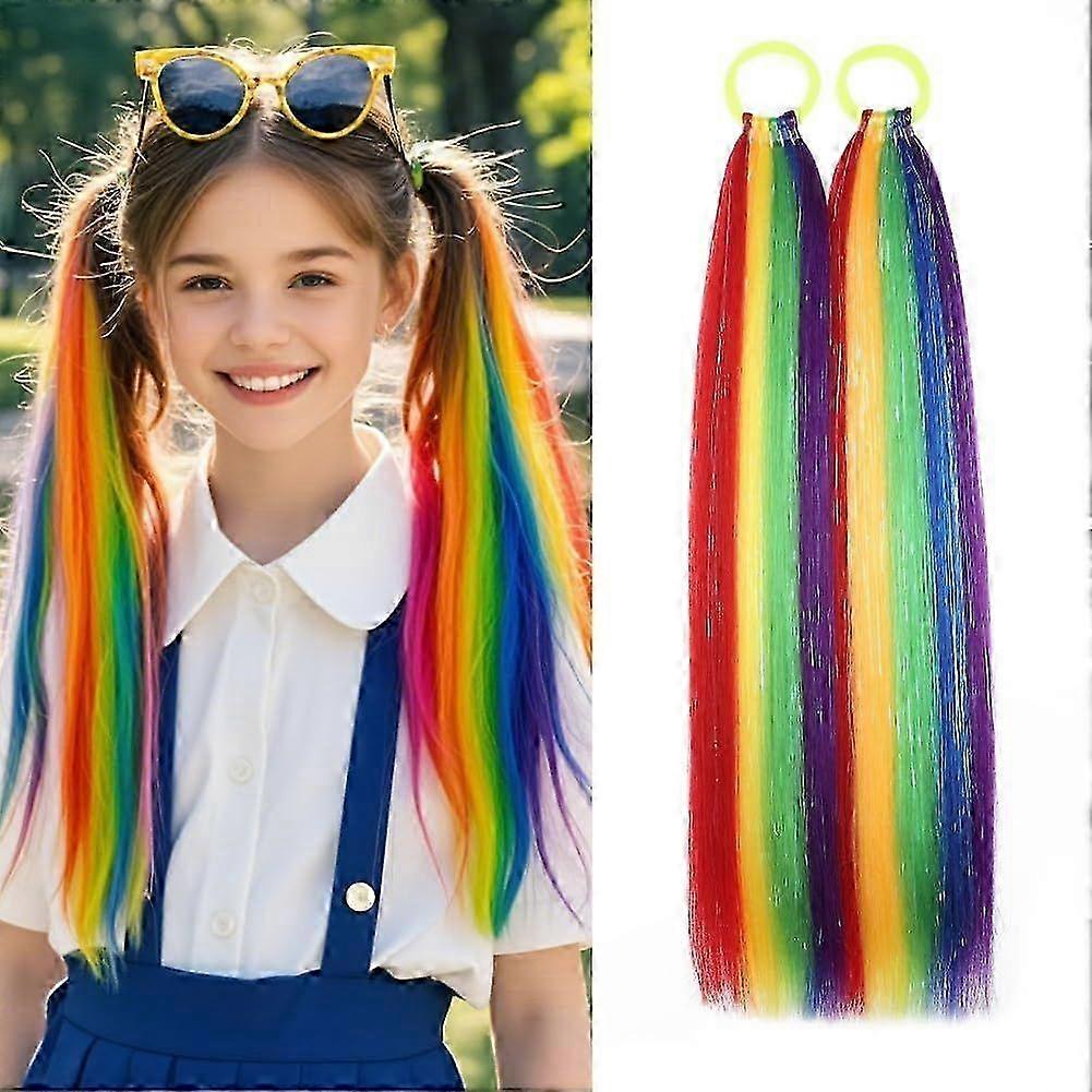 2025 Latest Model Rainbow ponytail extensions, ponytail hair wire extensions with ties for