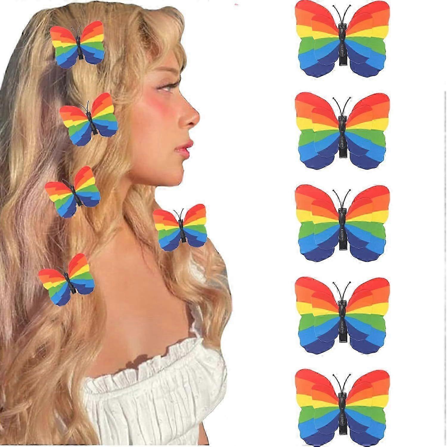 2025 Latest Model 5 Pieces Pride Day Rainbow Butterfly Hair Clip LGBT Pride Hair
