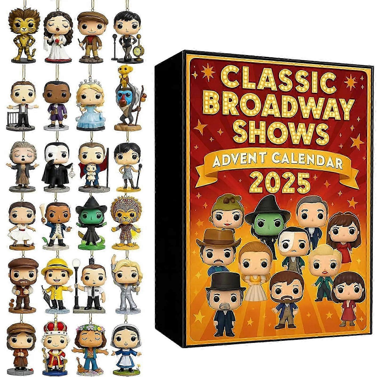 2025 Broadway Shows Advent Calendar with 2D Acrylic Characters, 2025 Christmas 24 Days Countdown Calendar Christmas Gift for Kids and Adults