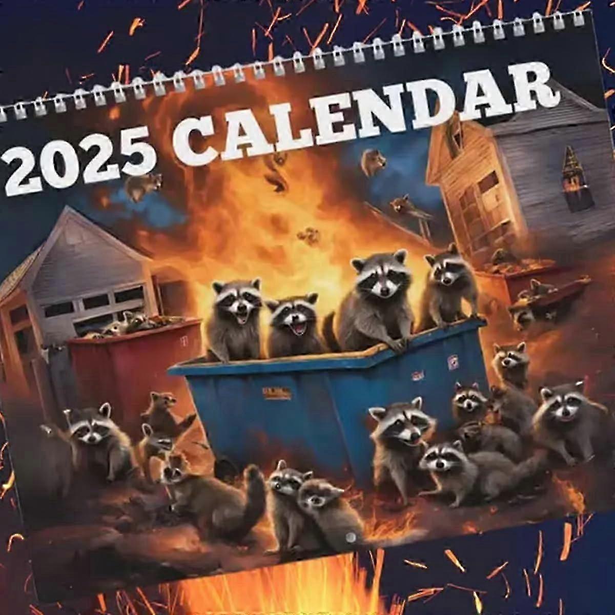 2025 Raccoon Dumpster Fire Calendar, Cute Raccoons Calendar In Dumpster Fires, Colorful 12-Month Raccoon Fire Calendar,2025 Raccoon Calendar Prank Gif
