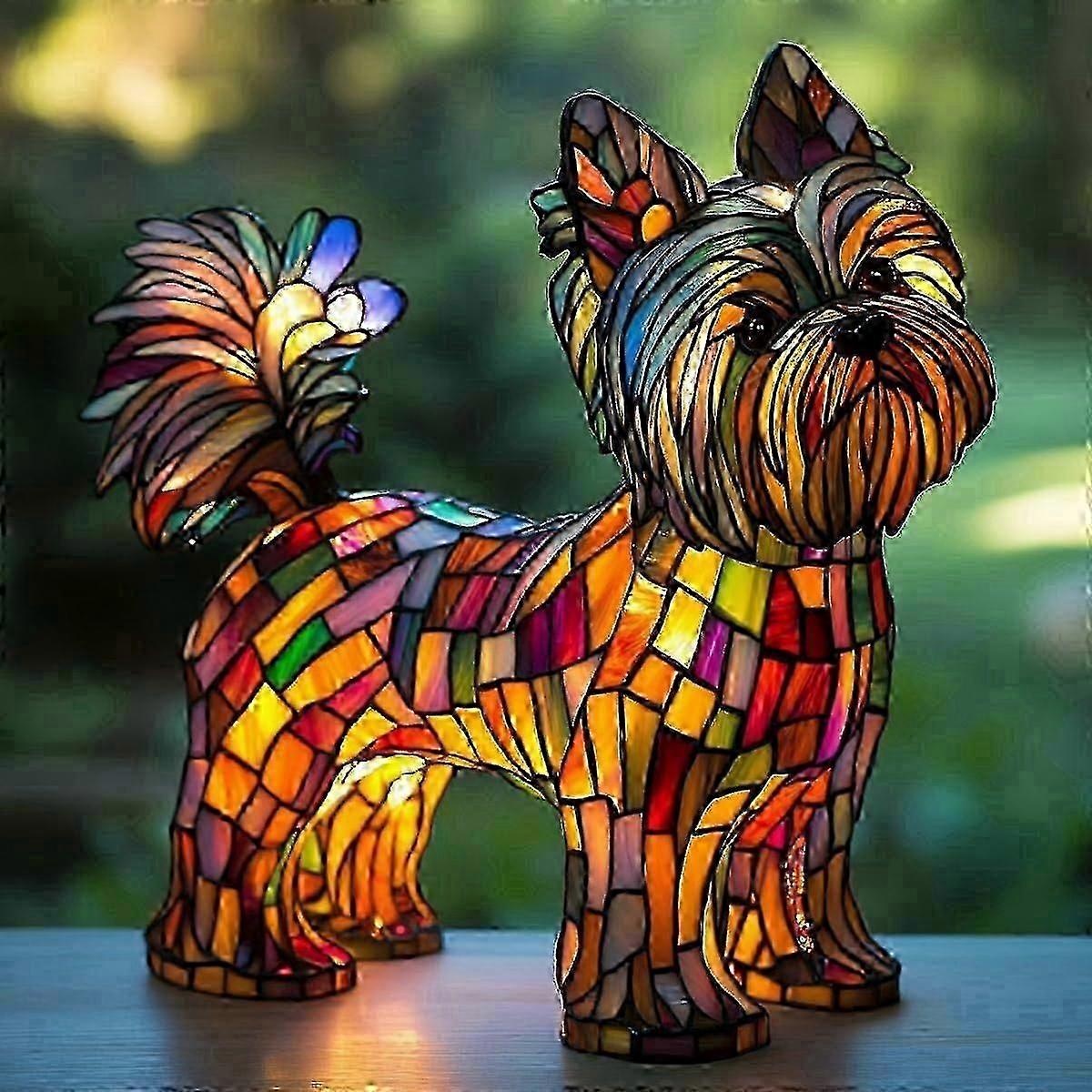 2025 Yorkshire Terrier Lamp, Dog Series Art Night Light, Hand Painted Stained Resin Night Light