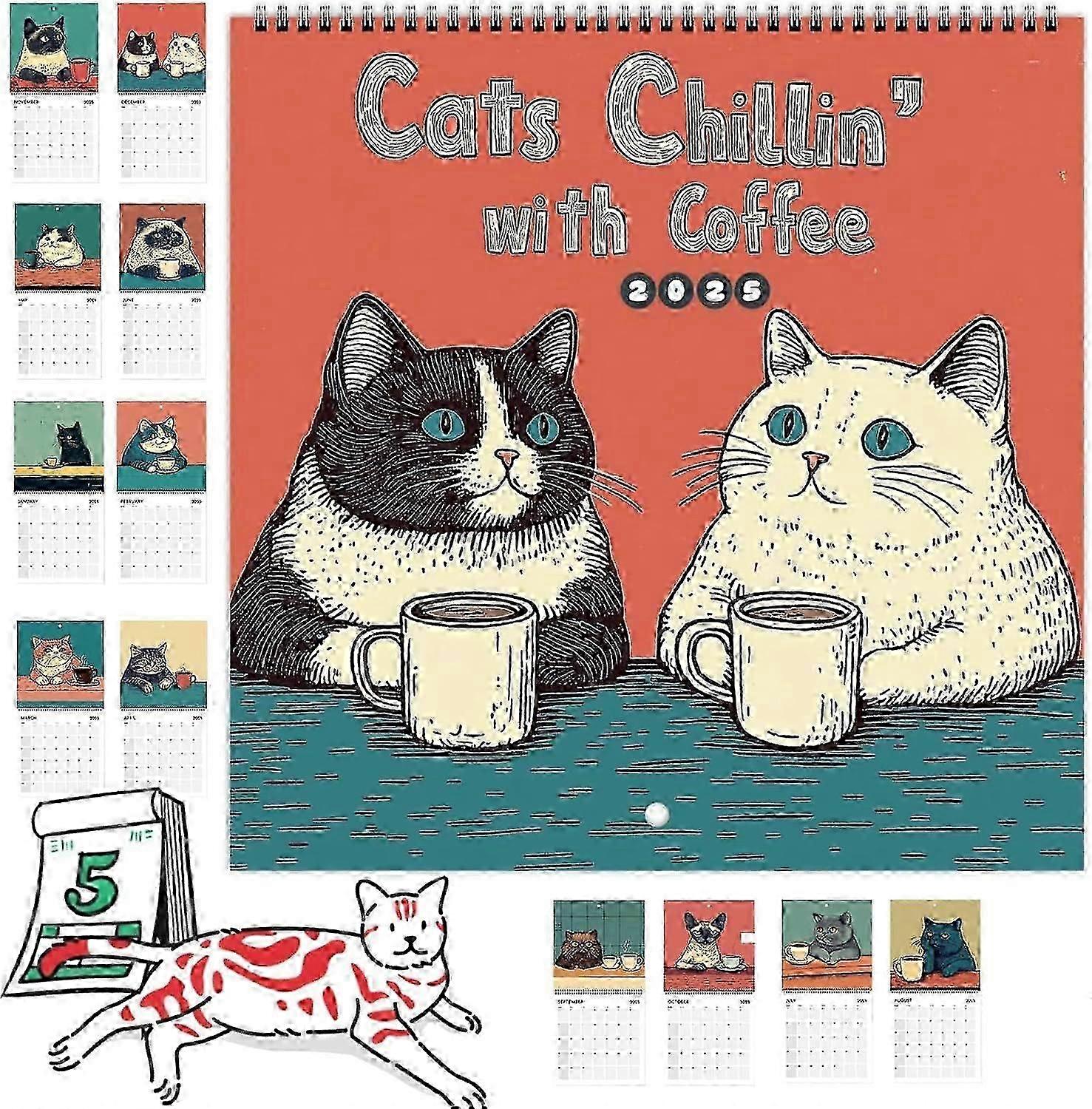 2025 Cat Calendar- Cats Chillin\' with Coffee, 8.5" 12 Monthly Coffee Cats Wall Calendar 2025 Planner, Funny Cat Calendar 2025, Gift for Cat Lovers