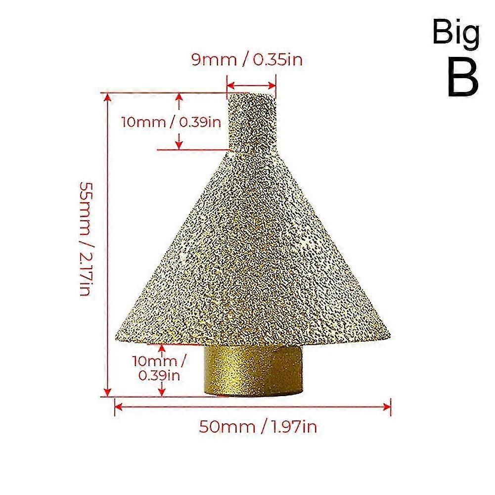The Diamond Beveling Chamfer Bit for Angle Grinders is a cutting tool designed to create precise beveled edges or chamfers on a variety of materials. This bit is specifically engineered for use with angle grinders, which are versatile power tools commonly used in construction, woodworking, and metalworking applications. FEATURES: 1. Superior Cutting Performance & Abrasion Resistance - The diamond beveling chamfer bit is constructed with high-grade diamond particles embedded in a metal matrix. This diamond coating ensures exceptional hardness, longevity, and superior cutting performance. Lengthened threaded interface, more sturdy. The diamonds provide excellent abrasion resistance, allowing the bit to withstand the demands of heavy-duty applications. 2. M10 Thread For Easy Installation - Designed to fit onto the spindle of an angle grinder, this chamfer bit is compatible with M10 spindle sizes. It offers easy installation and secure attachment to the angle grinder, ensuring stability and precise cutting performance. 3. Bevel Design - Relieves pressure, making it easy for the bevel to enlarge, grind, and polish existing holes. 4. Just Use it Directly - Built-in cooling wax, just use it dry, no need to add water during grinding, and opening holes is more convenient. 5. Matching Machine Model - Usually installed on 100mm Angle grinder/electric hand drill, which can be installed directly or with extension rod. 6. Widely Used - Diamond Beveling Chamfer Bit can be used for reaming, trimming, chamfering, and polishing. It can be used for a range of applications, such as Processing of stone and ceramics, etc. Its versatility, precision, diamond coating make it a valuable tool for professionals and enthusiasts. SPECIFICATIONS: Material: Brazed diamond Scope of application: Ceramic tiles, marble, quartz stone, granite Applicable model: 100mm Angle grinder Function: Suitable for expanding holes, chamfering, and polishing marble, quartz stone, ceramic tiles, etc Features: Sharp grinding, wear-resistant , environmentally friendly, and long service life Size: As shown PACKAGE: 1/2 * Diamond Beveling Chamfer Bit For Angle Grinders Note: Due to the light and screen setting difference, the item's color may be slightly different from the pictures. Please allow slight dimension difference due to different manual measurement. Sold by-YJL official store
