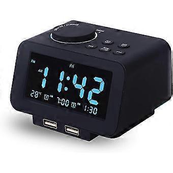 2025 Dual USB Charging Digital Alarm Clock with FM Radio Temperature Detection Dual Alarms 7 Alarm Tones and 6-Level Dimmer Brightness