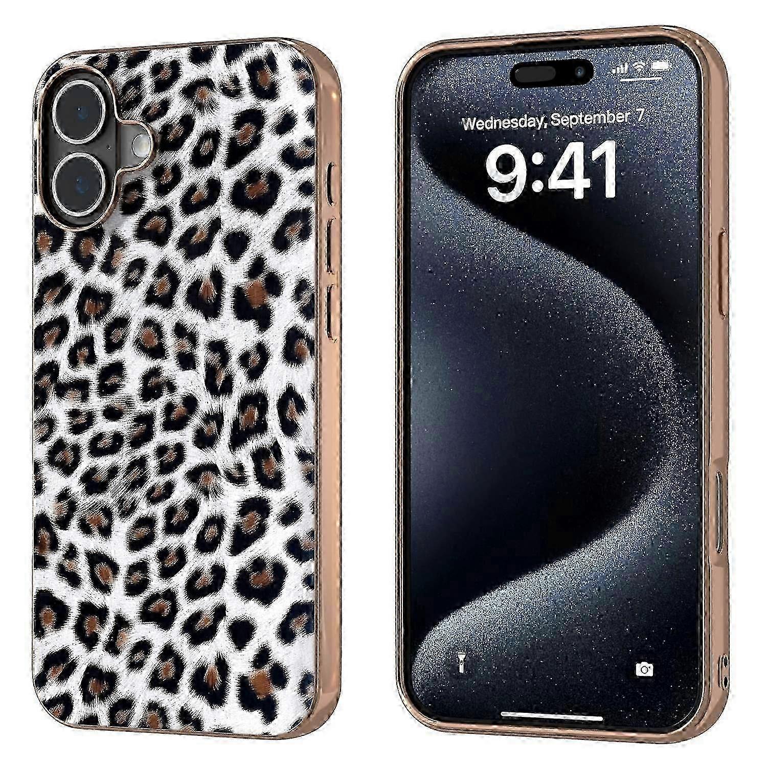 2025 For iPhone 16 Case Electroplating Leopard Pattern PU+TPU Phone Cover