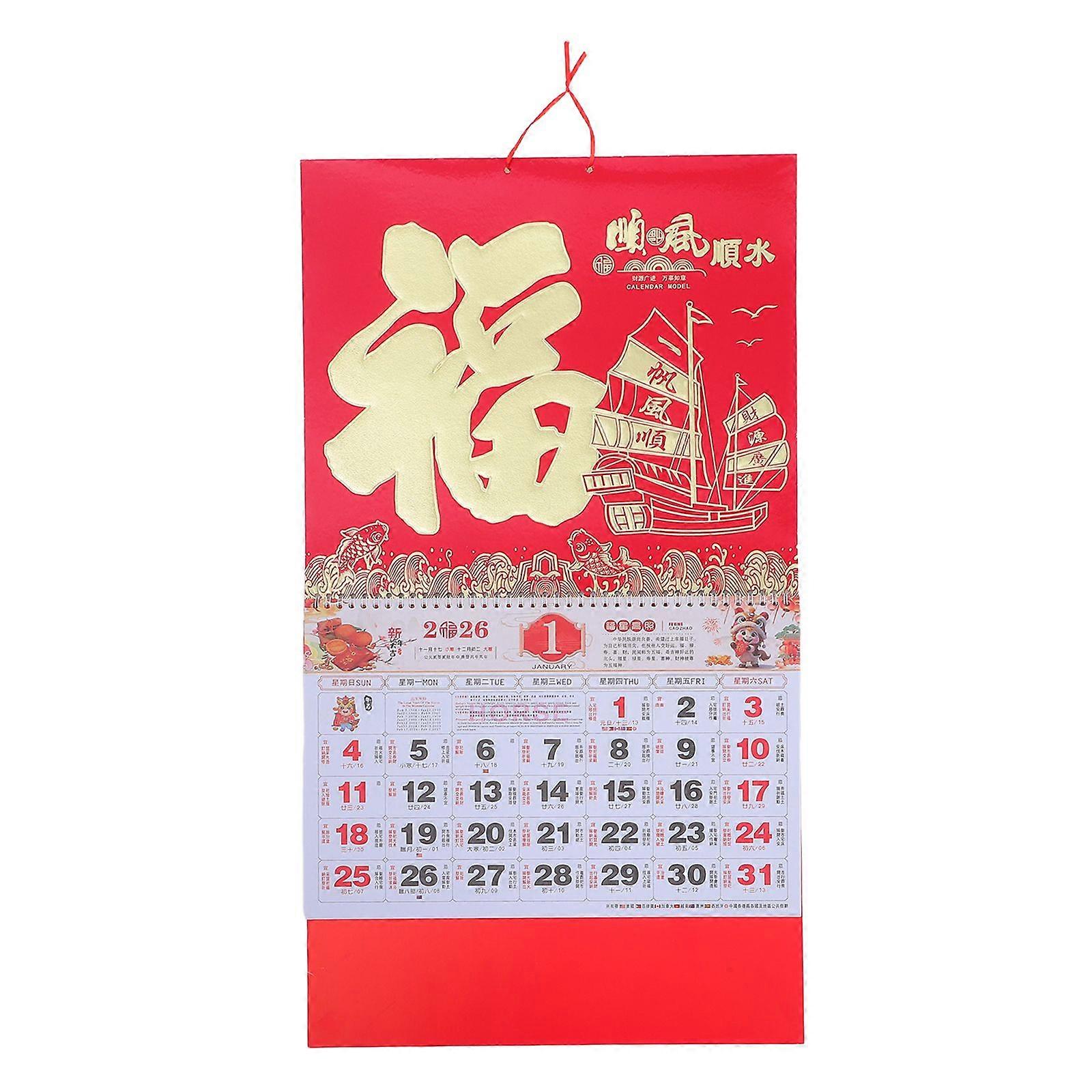 2026 Chinese Wall Calendar, Lunar New Year Hanging Calendar, Zodiac Horse Year Monthly Planner With Foil Fu Character For Home Decoration
