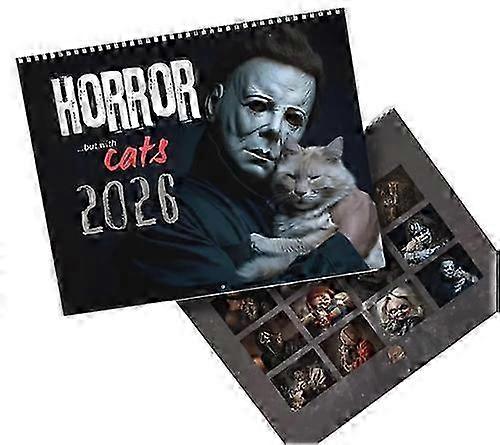 2026 Halloween Horror Movie & Cats Wall Calendar –Spooky Feline Art, 11x8.5 Inch
