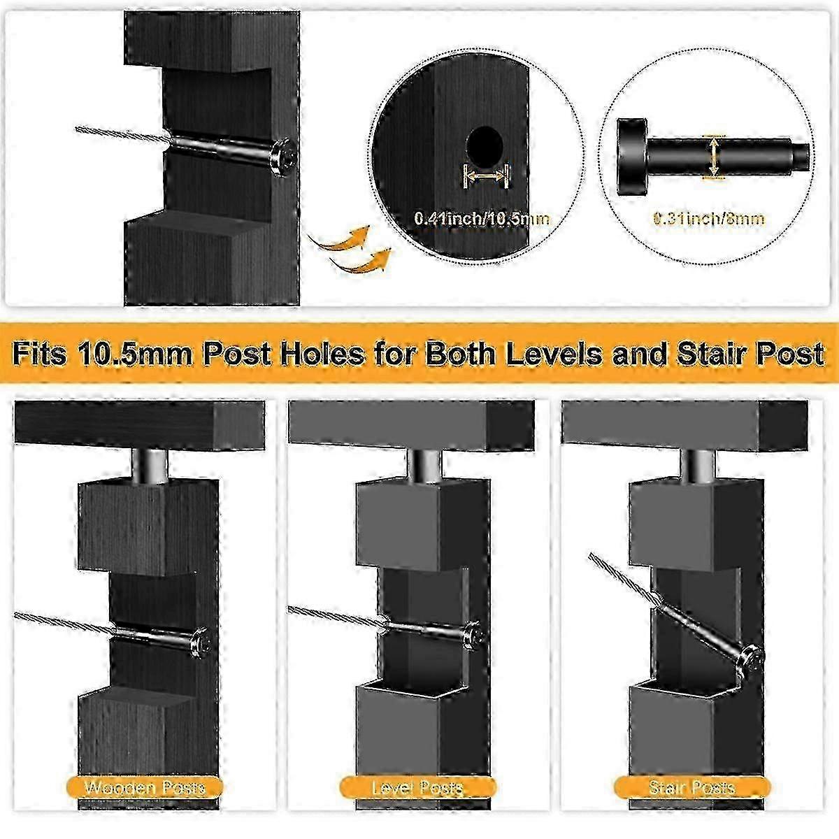 20pack Black Invisible Cable Railing Kit, Marine Grade T316 Swage Tensioner And Terminal Hidden For Cable Railing