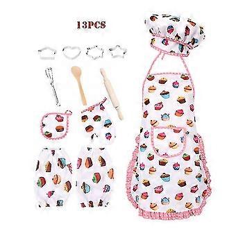 20pcs Cute Kids Cooking And Baking Kit Toddler Apron Chef Hat Girls Dress Up Costume Career Role Play Pretend Play Kitchen Accessories Make Bake Cooki