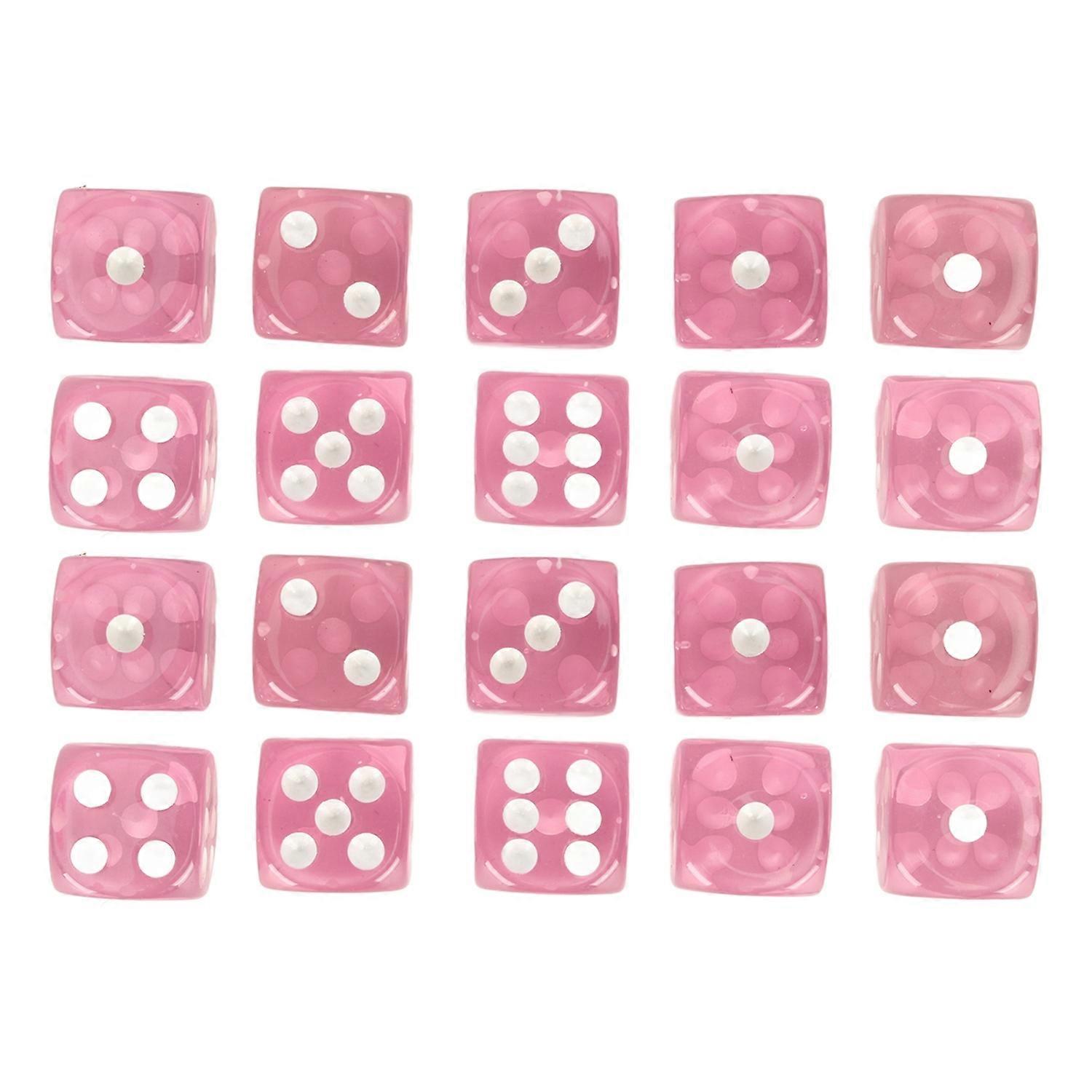 20pcs Dice Set 6 Sided Transparent Dices Rounded Corner Dice for Board Games and Teaching Math Pink