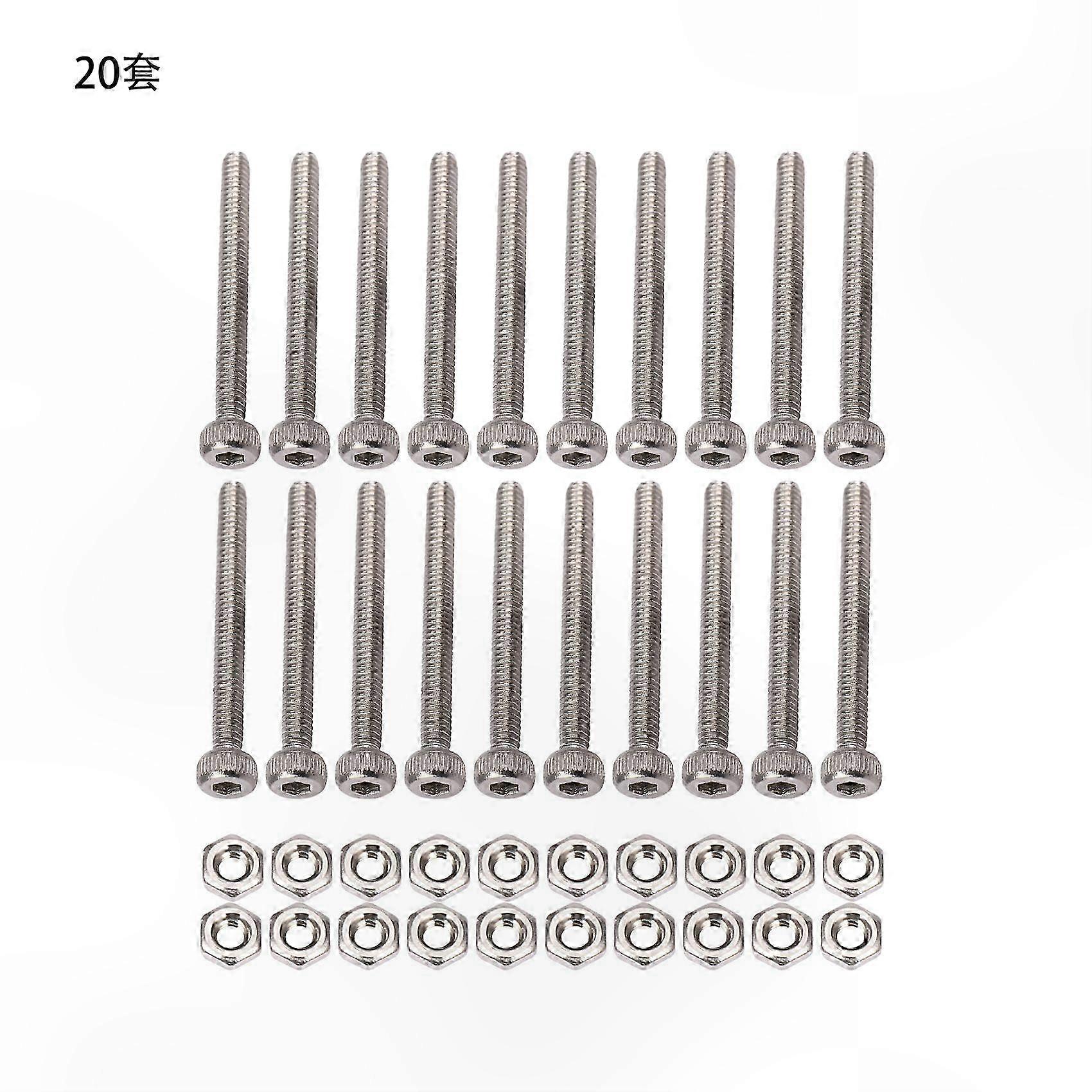 20Pcs Hex Socket Knurled Cap Screws Nuts Set M2 x 20mm Long