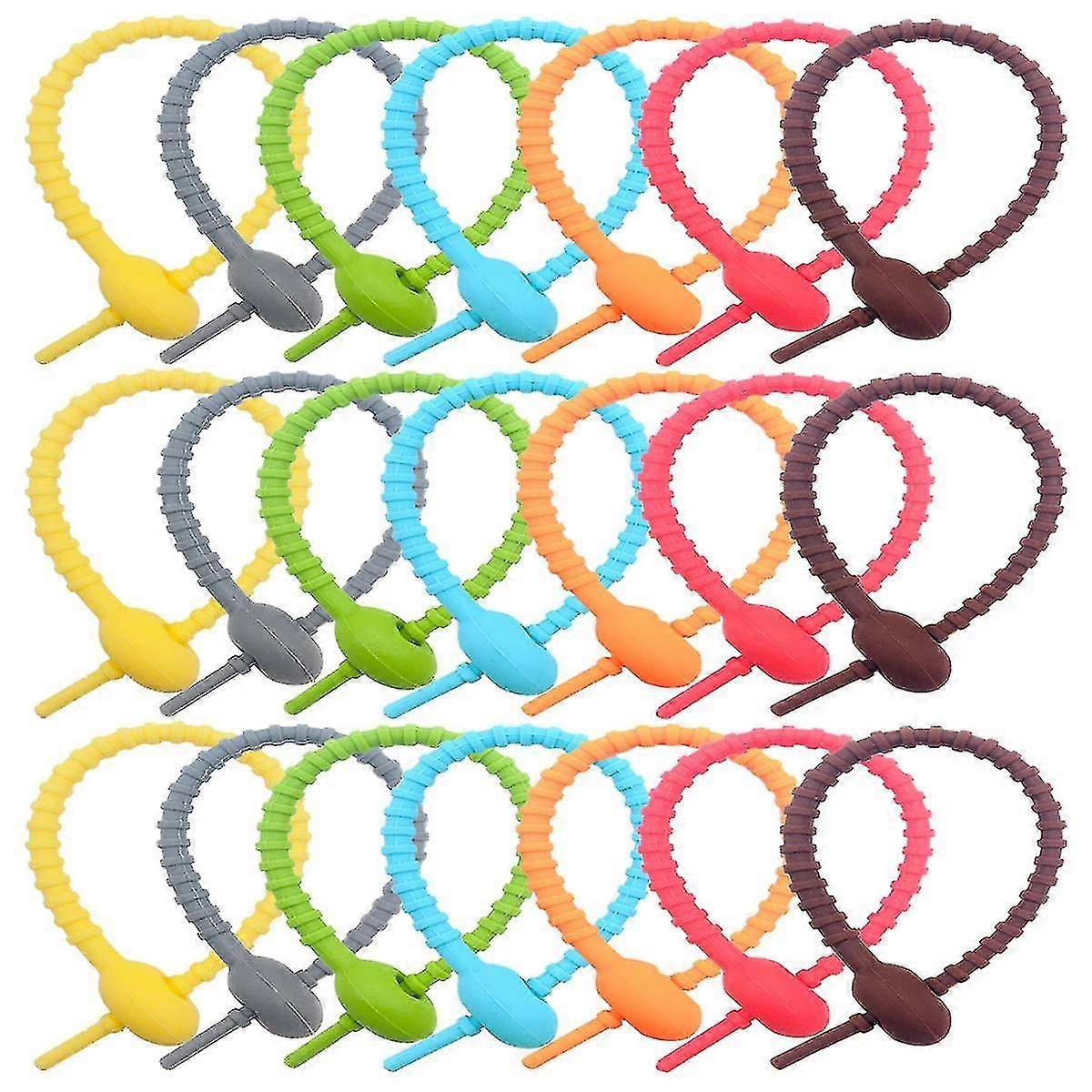 21pcs Colorful Silicone Twist Ties, Cable Cord Coil Management Organizer, All Purpose Bag Sealing Clips, Reusable Bread Tie, 21cm
