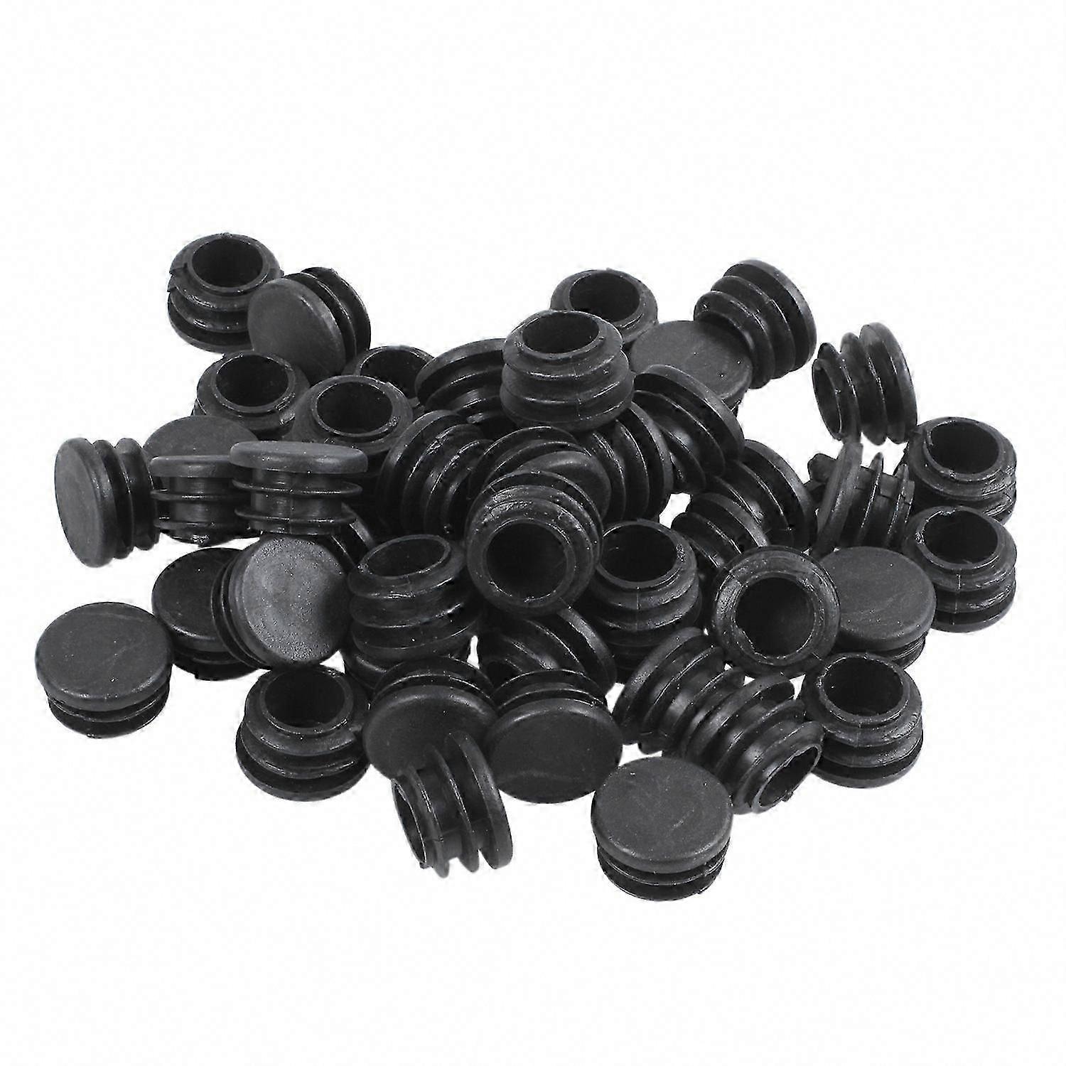 22mm Plastic Round Cap Chair Leg Tips 50 Pcs - Ribbed Tube Insert for Table Legs
