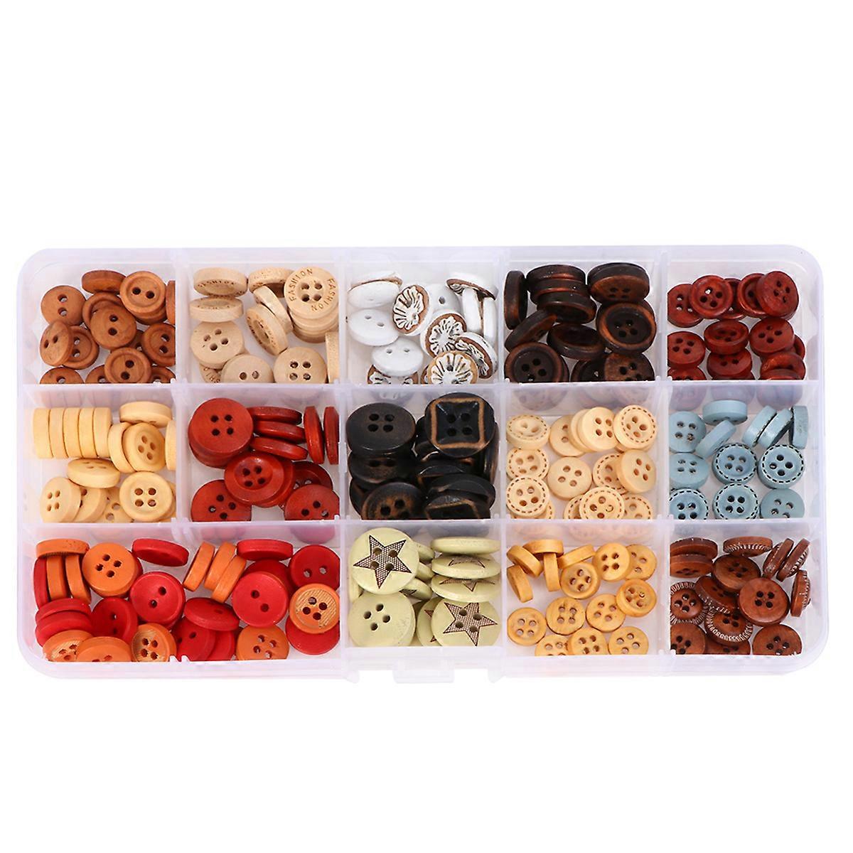 225pcs Assorted Colorful Wooden Buttons for DIY Crafts, Clothes, Hats, Shirts – Perfect for Kids, Christmas & Creative Projects