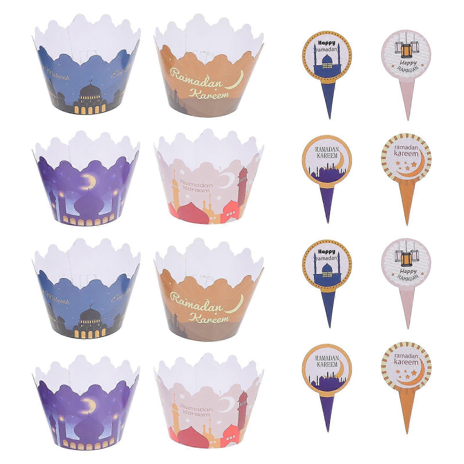 24 Sets Eid Mubarak Cupcake Wrappers Paper Cupcake Inserted Decorations
