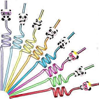 24 Pieces Panda Drinking Straws Reusable Panda Theme Straws Plastic Panda Drinking Straws For Birthd