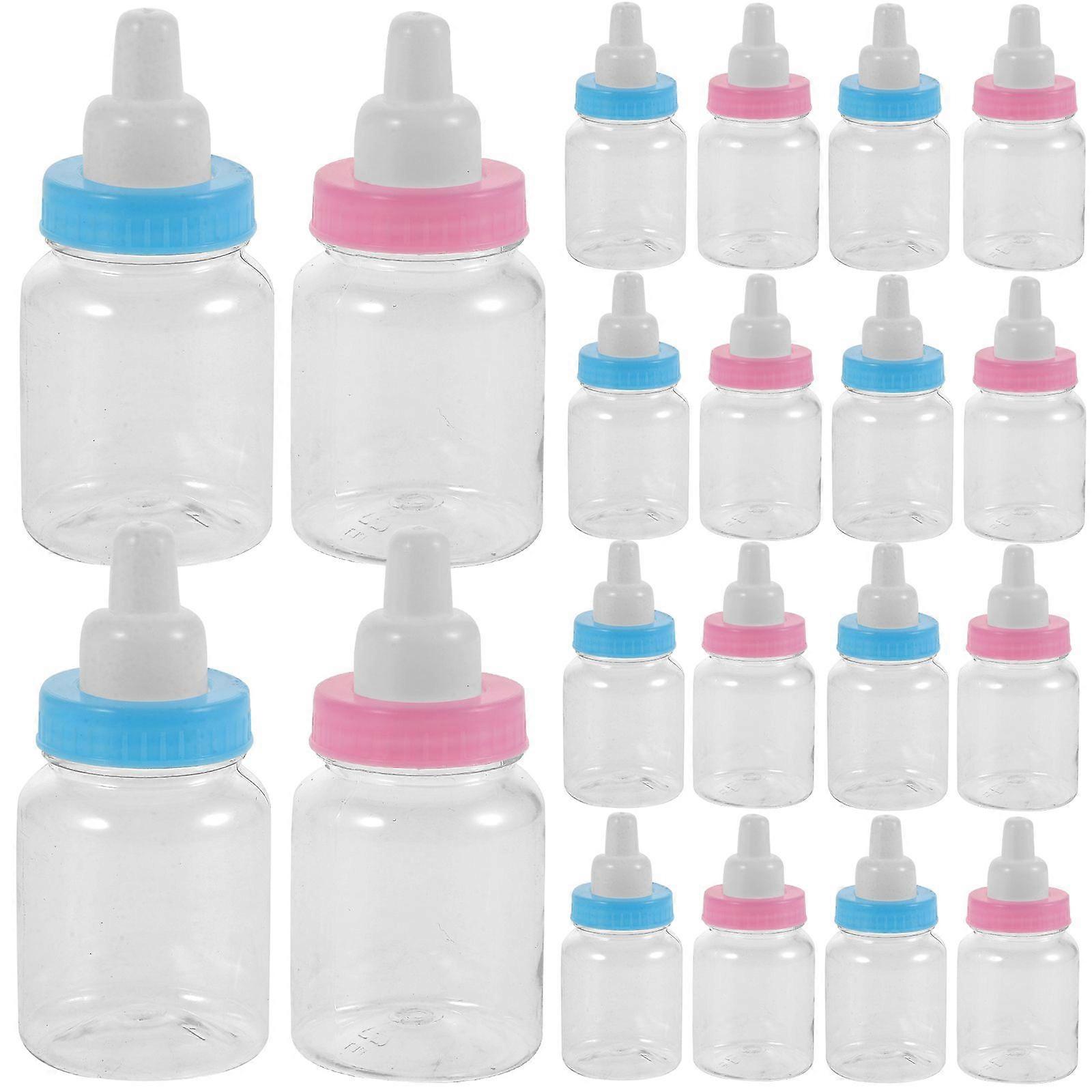 24pcs Creative Cartoon Mini Feeding Bottle Shape Decorative Candy Bottle Transparent Nursing Bottle for Baby Shower Party Favors (12pcs Blue and 12pcs