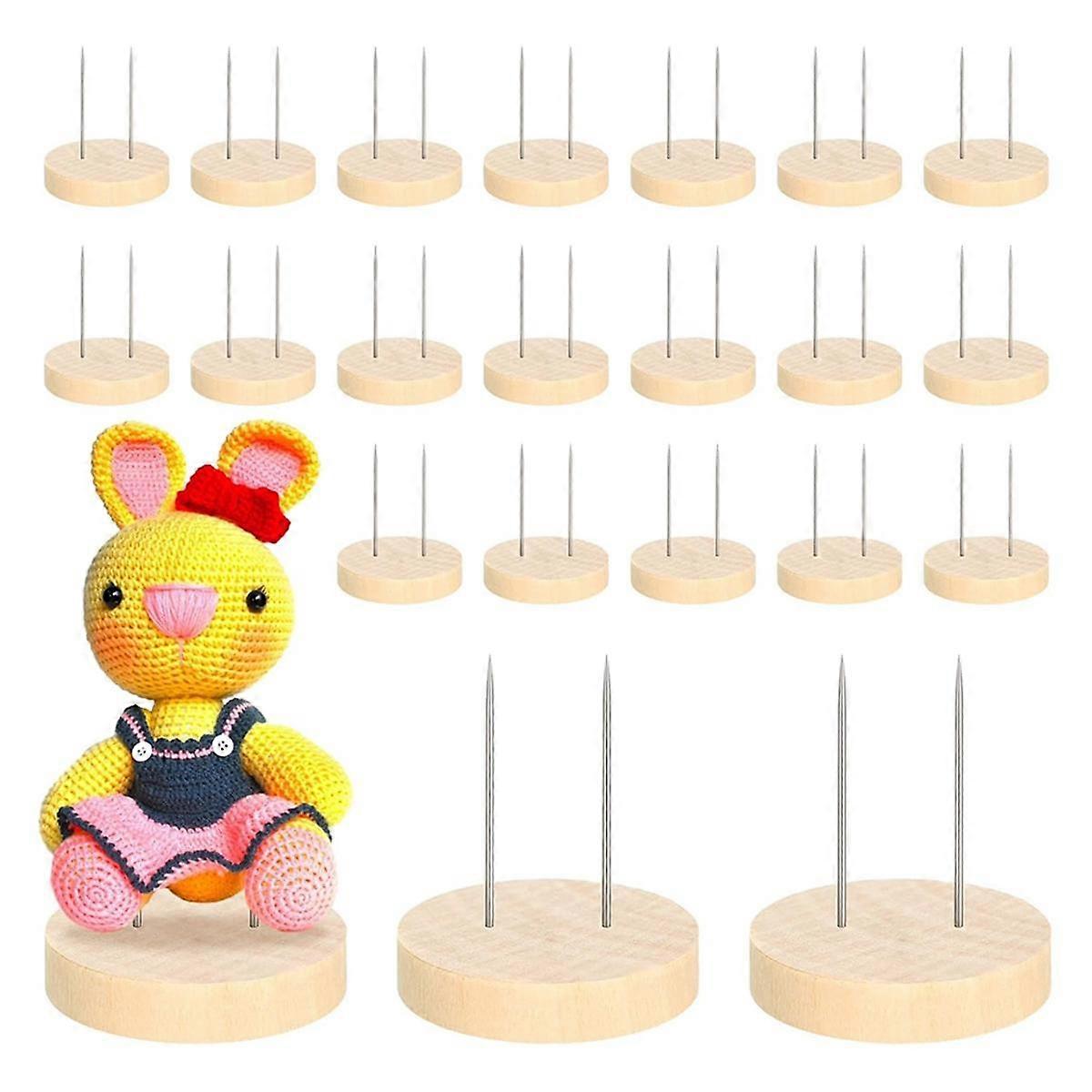 24pcs Crochet Doll Stand Double Steel Needle Doll Stand Felt Animal Doll Toy Wooden Base Support Ac