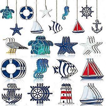 24 قطعة زخارف جدار الشاطئ الساحلي ، ديكور الجدار البحري ، نجم البحر الأبيض المتوسط البحري / منارة / مرساة / قارب / زخرفة حلقة السباحة