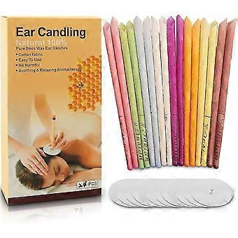 24 قطعة شموع الأذن الطبيعية ، شمع العسل المجوف مخروط الكاندلنج غير سامة - CHUN