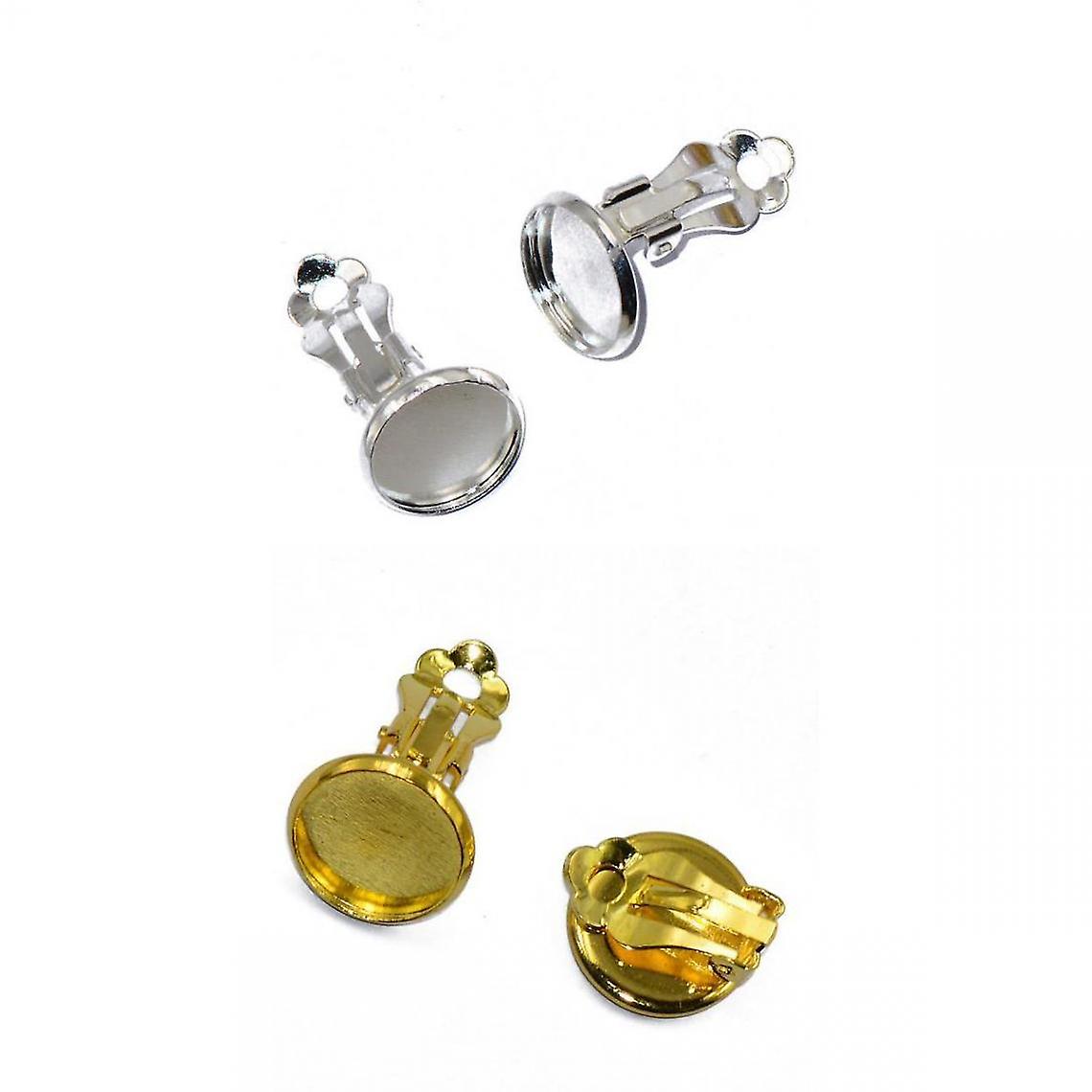 24 Pcs Clip On Earrings Findings Fit 12mm Cabochon Settings Silver & Gold